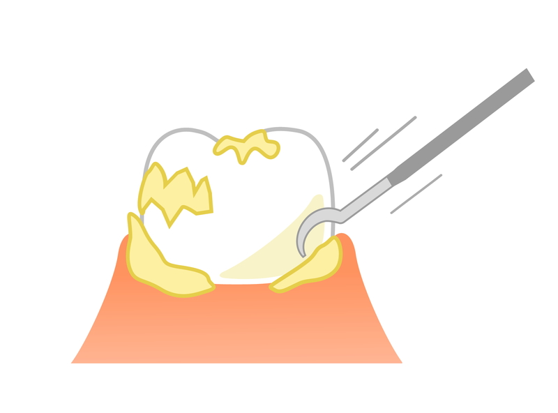 どんなに歯みがきを丁寧に頑張っても、みがき残しは必ず発生します、そのため定期的に歯と歯、歯と歯肉の間(歯周ポケット)などに付着した歯垢や歯石を取り除くスケーリングを行うのが効果的です。また、歯周ポケットが深い場合はルートプレーニングと呼ばれる処置を行うこともあります